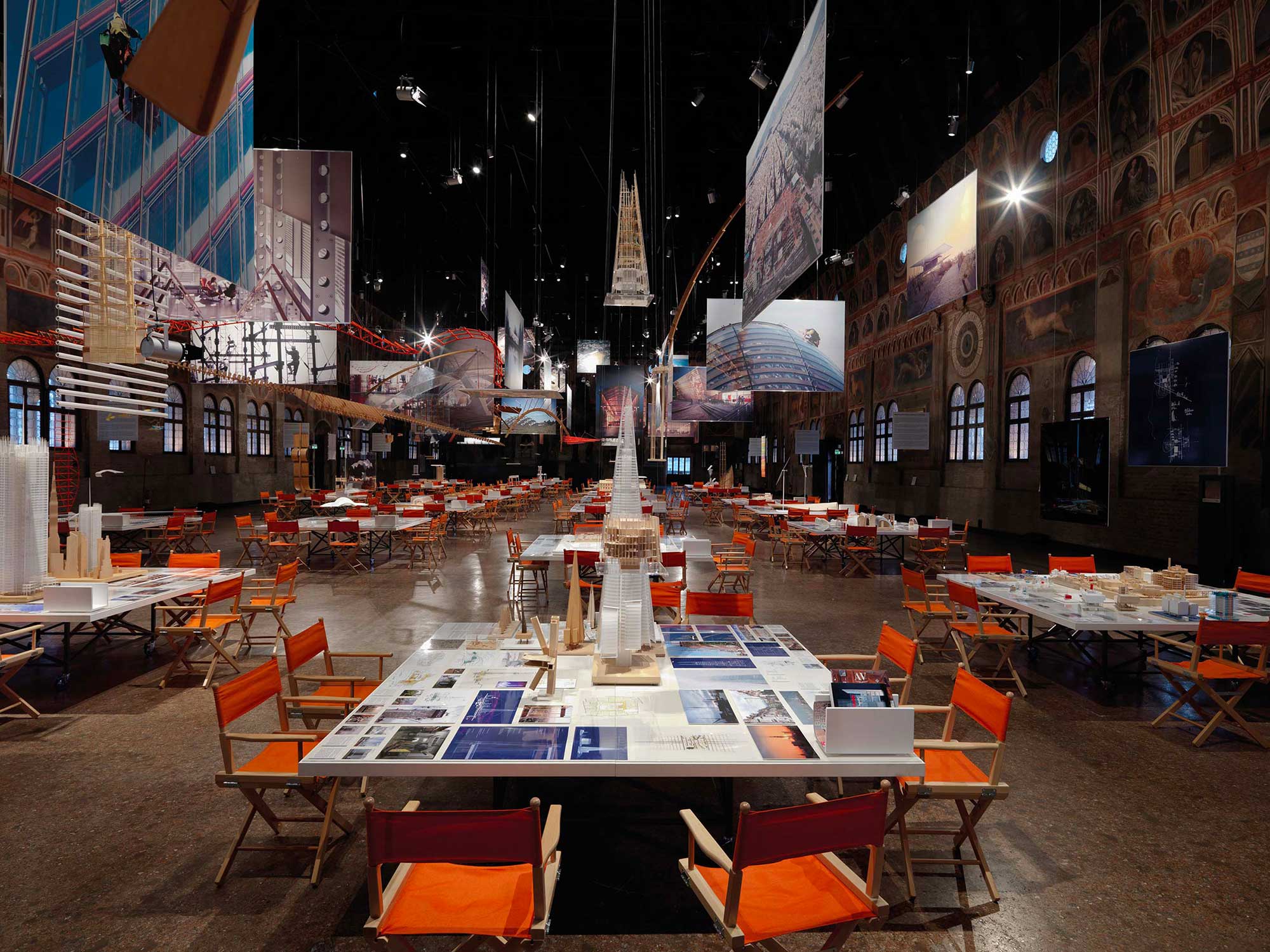 Abbiamo pensato al percorso espositivo nel Palazzo della Ragione di Padova come a una specie di girovagare tra mondi: quello sociale della polis che si trasforma; quello poetico dell’assenza di gravità; quello più strettamente progettuale della costruzione; quello ideale che considera l’arte come potente strumento di coscienza collettiva. C’è un continuo sconfinare tra questi mondi diversi, che inevitabilmente si confondono, si sovrappongono. I grandi tavoli monografici sono isole di un arcipelago. Al di sopra di essi, in alto, tutto vola, tutto è sospeso. L’idea dell’assenza di gravità – che caratterizza l’imprint, il modo di essere del nostro Renzo Piano Building Workshop – viene espressa semanticamente dal navigare leggero dei modelli e delle immagini nell’enorme volta del Salone del Palazzo della Ragione. Mi piace pensare che questa mostra possa essere, ancora una volta, il navigare nello spazio.